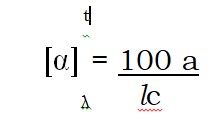 • Where [α] is the specific rotation at wavelength λ, t is the temperature, a is the observed rotation in degrees (°), l is the path length in decimeters, and c is the concentration of